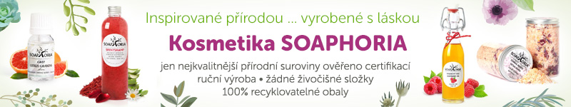 Inspirované přírodou...vyrobeno s láskou! Produkty přírodní kosmetiky Soaphoria jsou výsledkem každodenní poctivé ruční práce. Vyzkoušejte na své pleti dotyk přírody. Rozzařte váš vzhled zvenku i zevnitř.